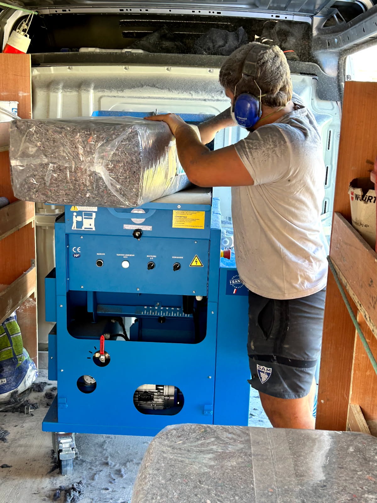 La cardeuse et l'isolant "Fileco" ont été fourni par l'agence Chausson Matériaux à Lons - Avenue GAY-LUSSAC