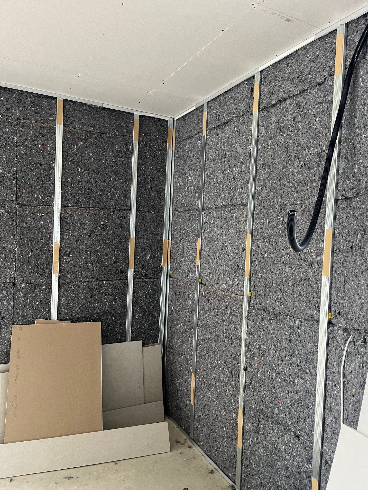 - Isolant acoustique avec une réduction de 43DB en 45mm avec une plaque standard et 70Db avec un panneau de 145mm avec une plaque standard